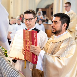 Am 10. Mai weihte Weihbischof Franz Scharl in der Pfarrkirche St. Leopold Donaufeld sieben Männer zu Diakonen für die Erzdiözese Wien. Die Kandidaten kommen aus verschiedenen Gemeinschaften: drei aus dem Wiener Priesterseminar, einer aus dem Benediktinerpriorat St. Josef in Maria Roggendorf und drei aus dem diözesanen Missionskolleg „Redemptoris Mater". Manuel Rennhofer, Joachim Loshehand und Julius Moses Münzer kommen aus dem Wiener Priesterseminar, P. Leo Maria Zehetgruber gehört dem Benediktinerpriorat St. Josef in Maria Roggendorf an drei weitere Kandidaten stammen aus dem diözesanen Missionskolleg „Redemptoris Mater“. Diese Vielfalt unterstreicht die Breite der geistlichen Berufungen in der Erzdiözese. Wir waren mit der Kamera dabei.