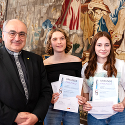 Geehrt wurden die jungen SiegerInnem und FinalistInnen der vierten Olympiade im katholischen Religionsunterricht. In Anwesenheit von Gäste aus Kirche, Wissenschaft und dem Bildungsbereich nahmen die SchülerInnen ihre Preise und Glückwünsche entgegen. Der österreichweite Wettbewerb legte heuer den Fokus auf Körper und Körperlichkeit — und damit auf eine hochaktuelle Thematik jugendlicher Lebenswelten. Wir haben die Verleihung mit der Kamera begleitet.